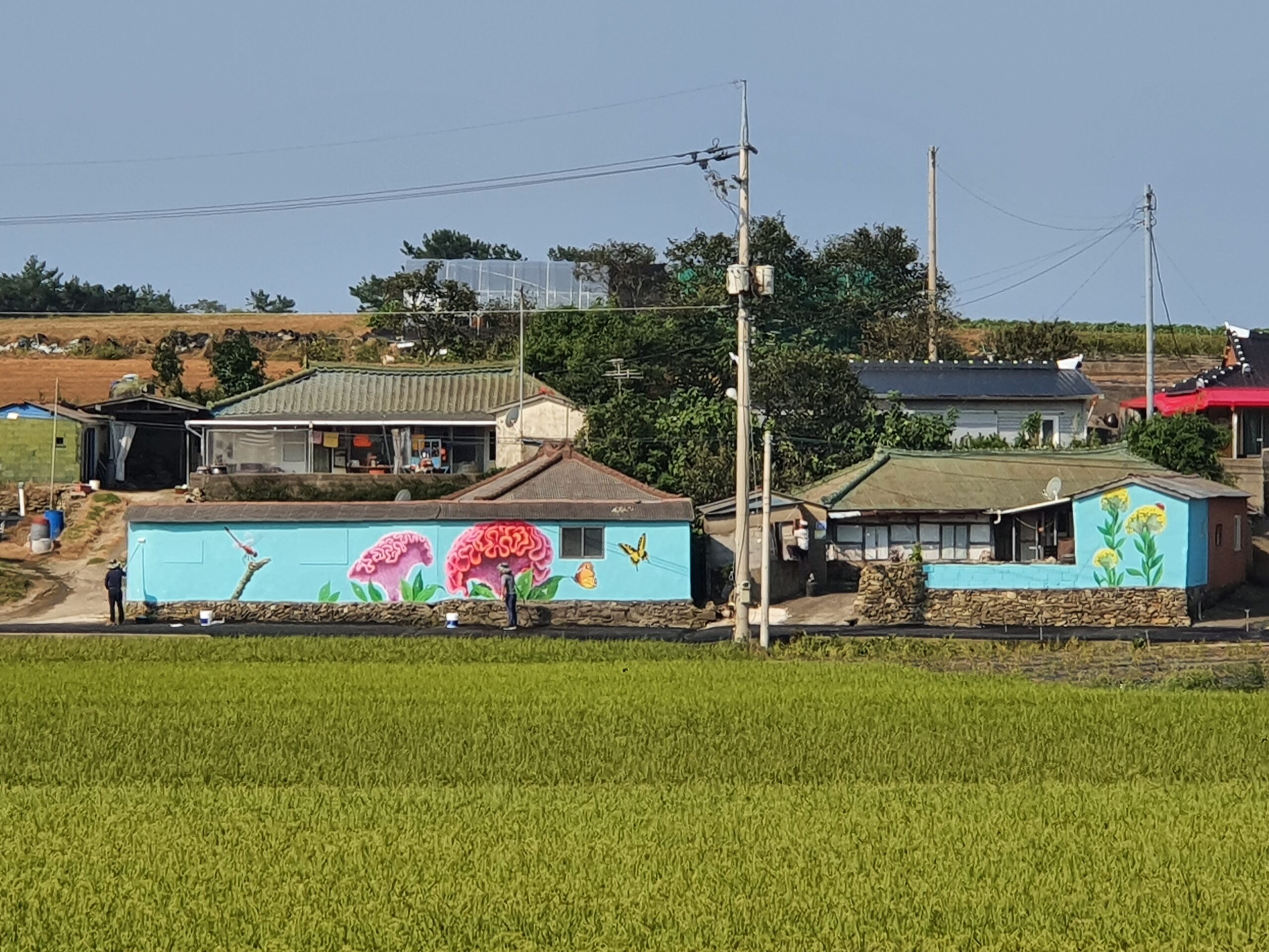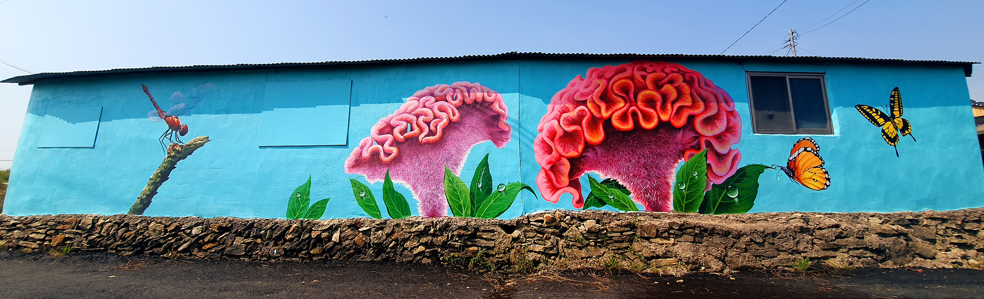 병풍도에 조성된 맨드라미꽃 벽화는 섬을 대표하는 꽃 자원을 시각적으로 확장한 관광객 포토존형 벽화 프로젝트입니다. 병풍도는 매년 맨드라미꽃이 군락을 이루며 피어나는 섬으로 알려져 있으며, 본 벽화는 그 상징성을 건물 외벽과 골목 공간으로 옮겨온 것이 특징입니다.