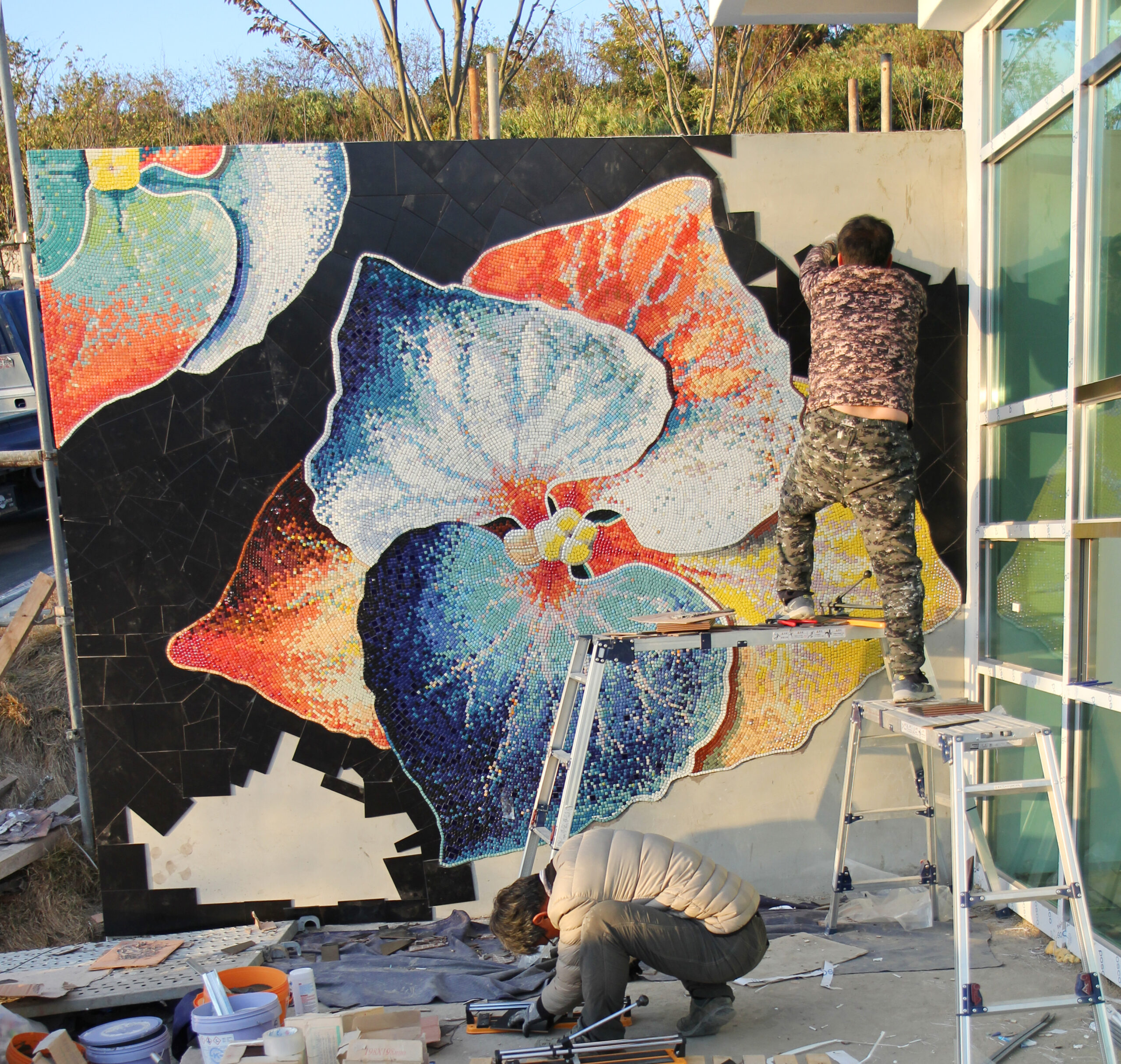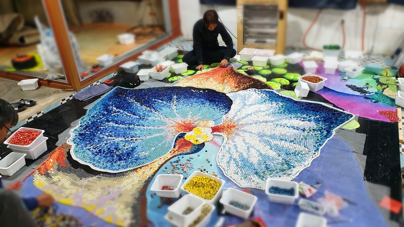 수국 타일아트는 아름다운 신안 도초의 대표적인 꽃인 수국을 영감으로 한 독특한 예술 작품입니다. 당사는 도초 지역의 아름다운 수국 정원을 현실적으로 재현하여 평범한 타일을 사용하여 특별한 심미적 감성을 담아냈습니다.