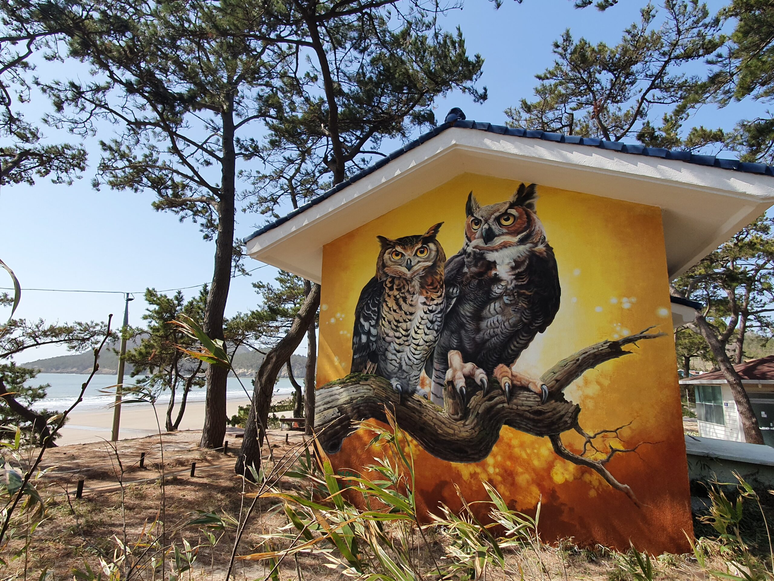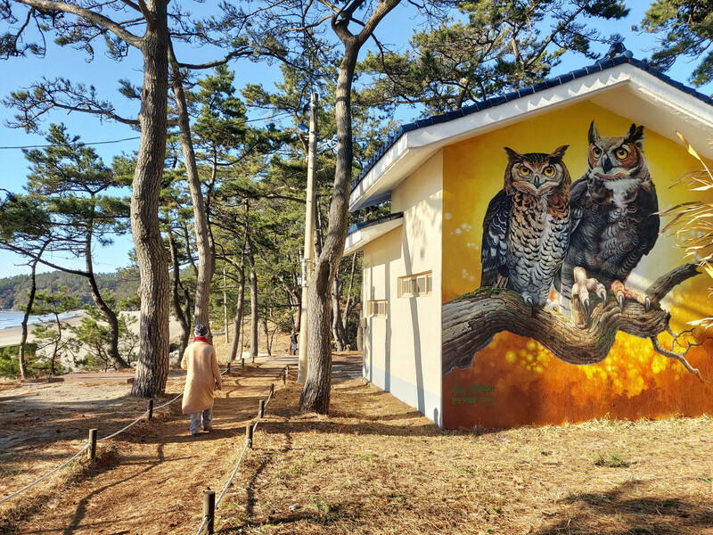 자은도 수리부엉이 벽화는 지역의 생태 정체성을 직관적으로 전달하는 동시에, 방문객에게는 기억에 남는 장면을 제공하는 시각적 랜드마크로 기능하며, 자연과 공존하는 섬 마을 이미지를 효과적으로 각인시키는 역할을 하고 있습니다.